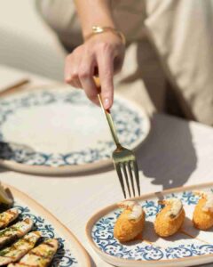 The place is meant to feel like a social hangout rather than a classic restaurant. It is inspired by coastal Andalusia and features a large 12-metre bar, handmade ceramics and embroidered table linens.